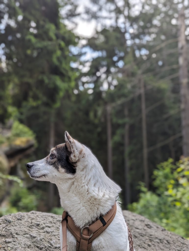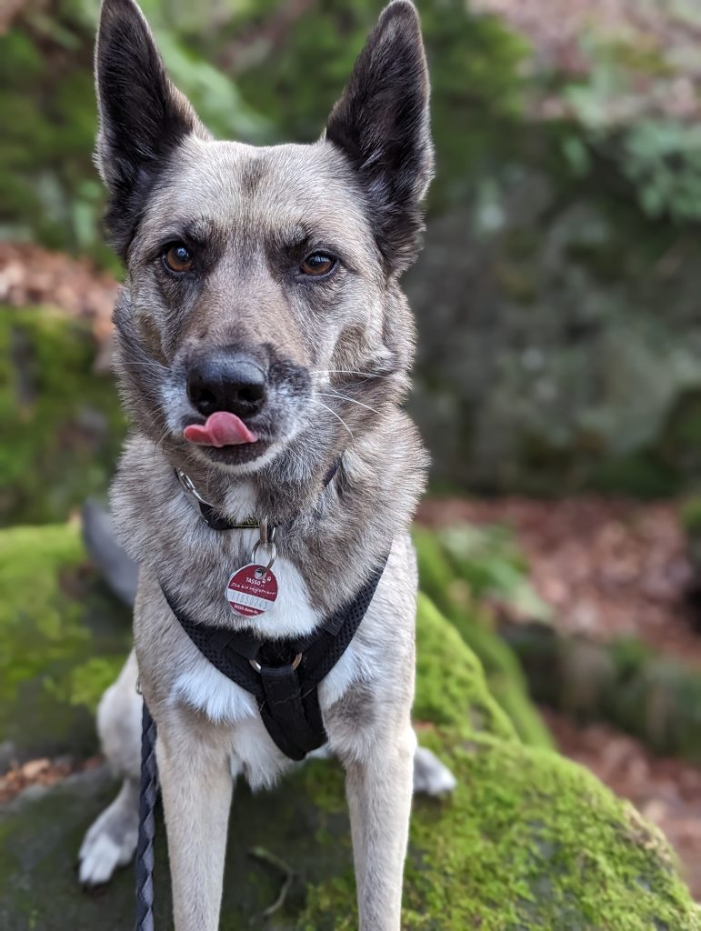 Maila ist ein liebevolles Trottelchen – manchmal chaotisch, manchmal unbeholfen, aber immer voller Herz. Sie hat Ängste, vor allem gegenüber fremden Menschen, doch bei mir findet sie Sicherheit und Vertrauen. Auf Spaziergängen schaut sie neugierig in die Welt, läuft manchmal gegen eine Laterne, stolpert, bleibt aber immer fröhlich und treu an meiner Seite. Sie spürt meine Stimmung, schenkt Trost, bringt mich zum Lachen – und zeigt jeden Tag, wie tief ihre Liebe ist.
